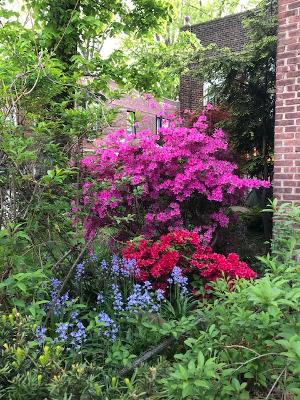 I think of these kinds of days as “gift” days, allowing me to more fully enjoy the cool mornings and to take longer end-of-day strolls through the neighborhood, with its profusion of flowering bushes and small flower-filled gardens.
