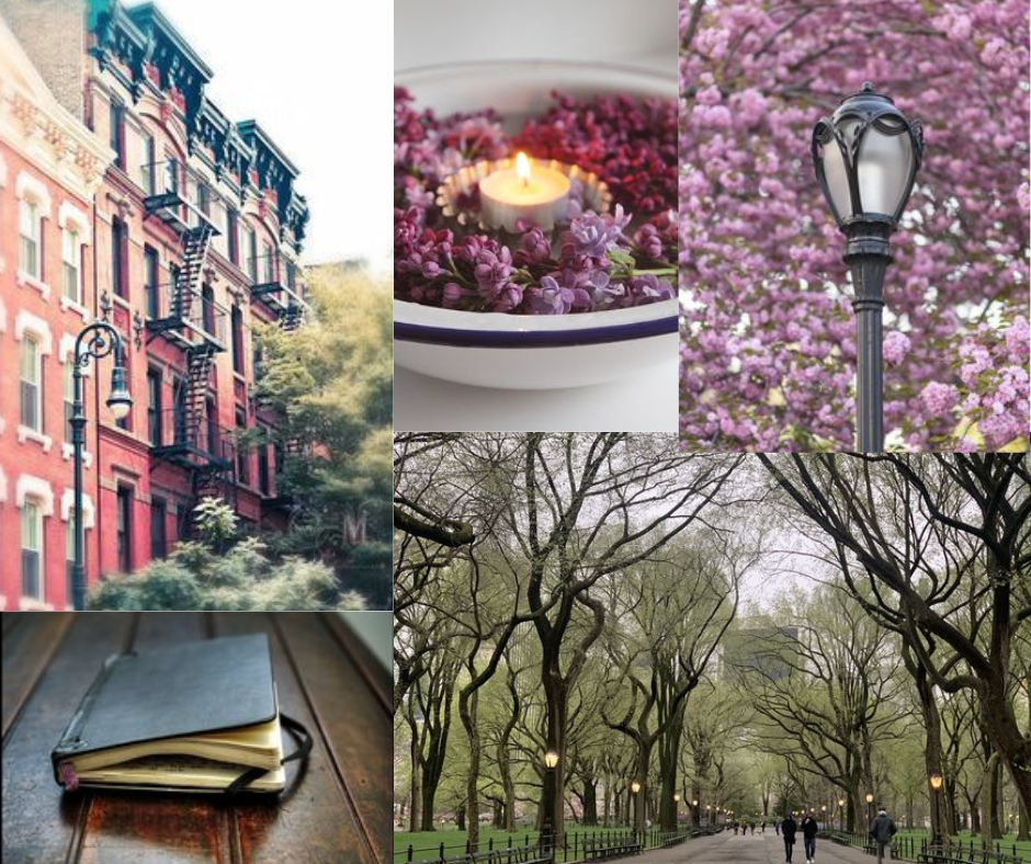 “Is April a time or a place? Honora wondered. Right now, as she looked out her window, the rain gurgling in the gutters, the trees full of white blossoms and tiny bright leaves against a pearl gray sky, it seemed a place – a land of beginnings, of youth, of beauty, a place to breathe deeply and stroll through, to enjoy its flowers and first greens, the cool soft air. She grabbed an umbrella and decided to wander through Central Park, down the Poet’s Walk to the lake, and absorb the April beauty.”